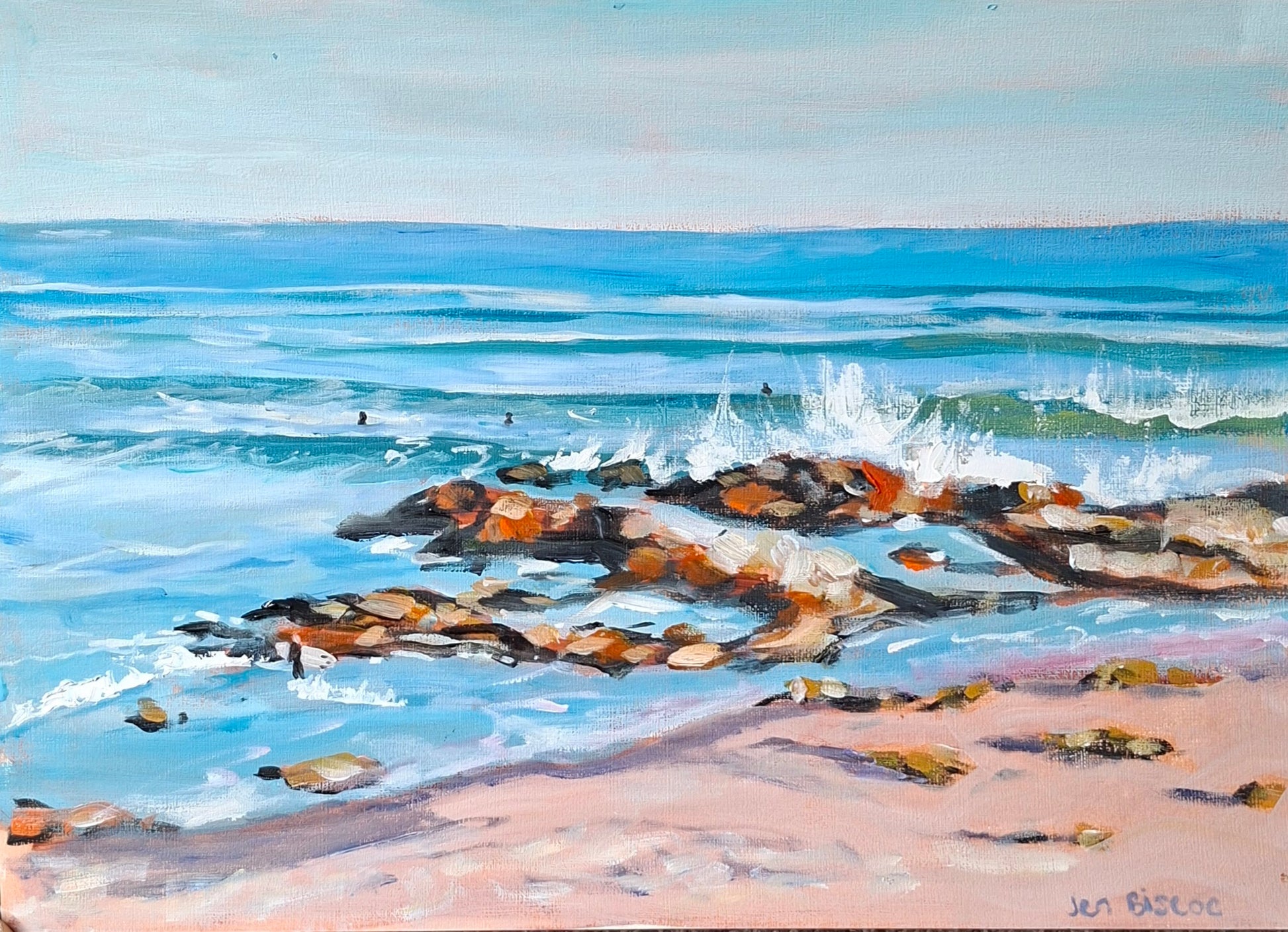Capture the energy of Middleton Point with this original A3 painting celebrating the surfers who call this South Australian coast home. Each brushstroke brings the dynamic movement and natural beauty of the break to life, making it a meaningful piece for anyone connected to this iconic local spot. Perfect for displaying your love of the ocean and the community that gathers here.